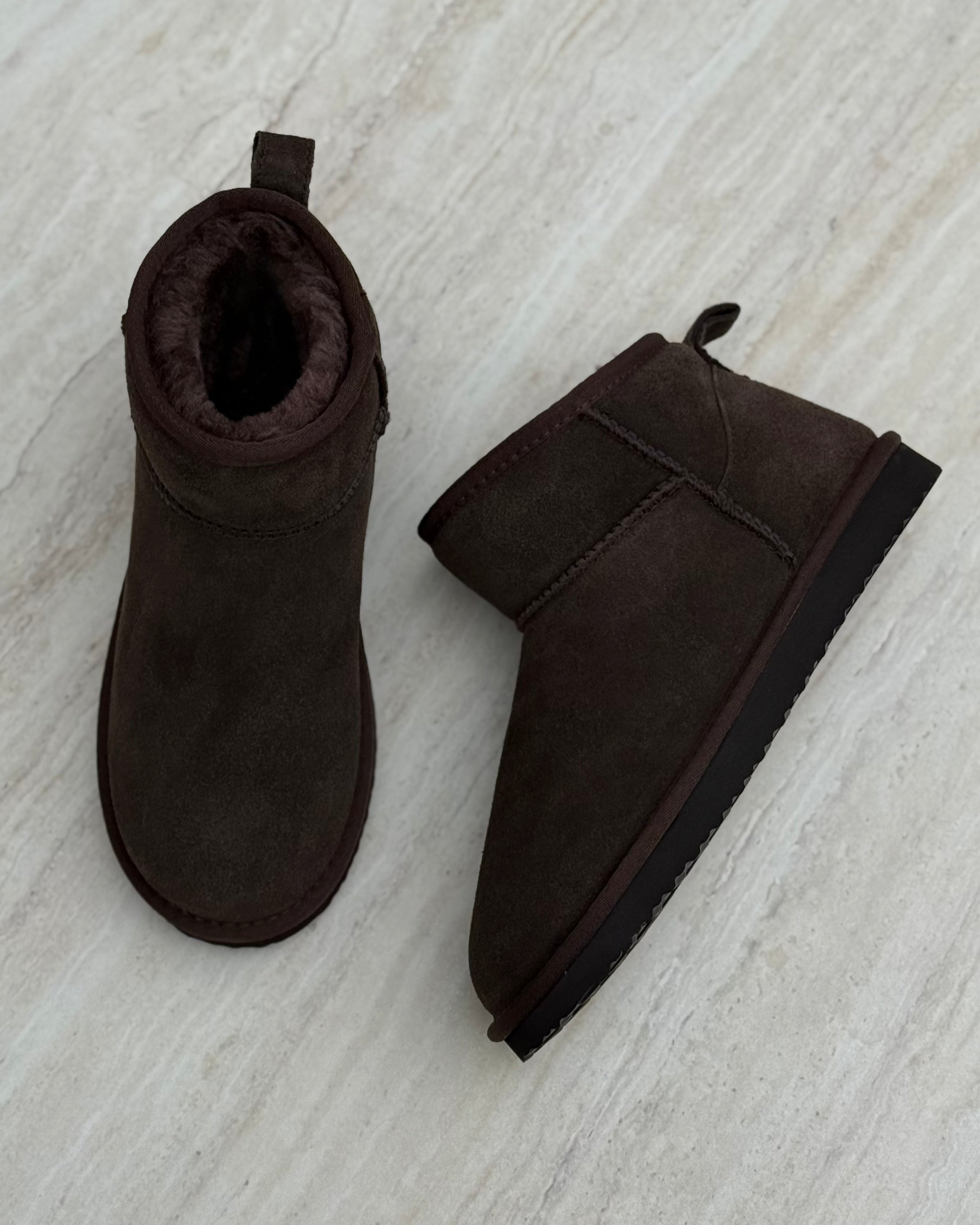 Bløde bamsestøvler i ruskind med solid gummisål.